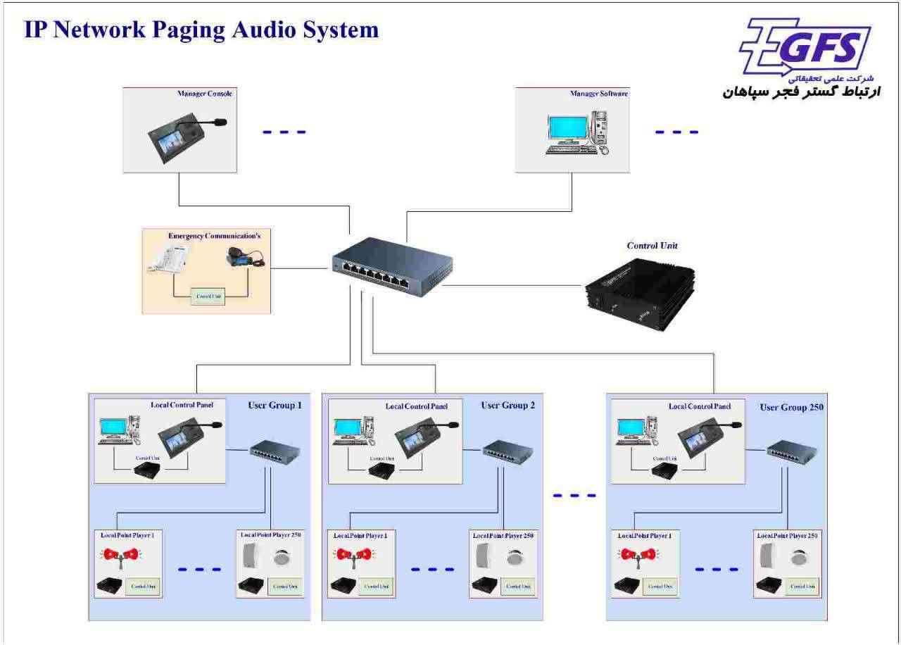 Network paging systems are a modern solution for voice notification in LAN and fiber optic networks that allow for control, distribution, and scheduling of messages through the internal network. These systems are a vital communication tool in public and industrial environments that allow for rapid and widespread notification in normal and crisis situations. The voice paging system also plays a vital role in crisis management, as it allows for immediate notification, rapid coordination, and crowd guidance in emergency situations. In times of crisis, these systems can prevent chaos and save lives in situations. This company, by researching and studying based on the voice requirements of various complexes, including administrative, industrial, public places, etc., and taking into account the latest communication platforms, has designed and built a comprehensive voice management system that has been registered with the Presidential Vice-President for Science and Technology as one of the company's knowledge-based projects. The lack of restrictions on the number of broadcasters in different places, and the use of fiber and LAN networks are considered unique features of this system. Therefore, in a complex with precise design and placement of the players, it is possible to create a uniform and expressive sound through existing fiber and LAN networks. Another capability of the system is the ability to use multiple industrial hardware and software consoles, with the possibility of zoning and creating different access levels. Therefore, there is access and information for different parts of a complex